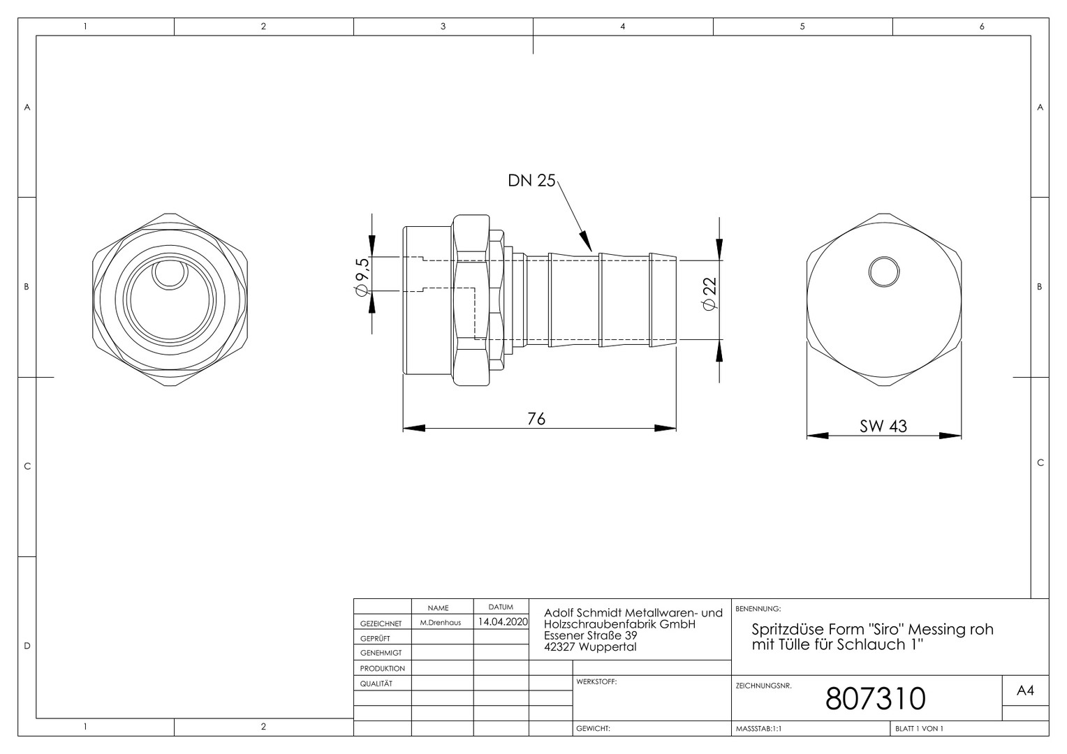 ASW Spritzdüse Siro für Schlauch 1", drehbar, Messing roh K10814129