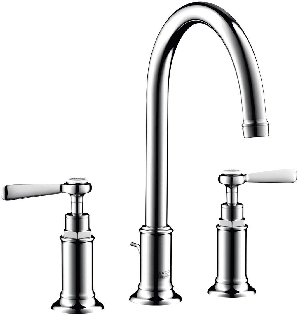 hansgrohe 3-Loch-Waschtischarmatur 180 Axor Montreux Ausladung 175mm, mit Hebelgriffe, Zugstangen-Ablaufgarnitur, chrom