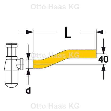HAAS Ablaufrohr DN 32 x 300 x 40 mm, gekröpft, Messing verchromt K9326095