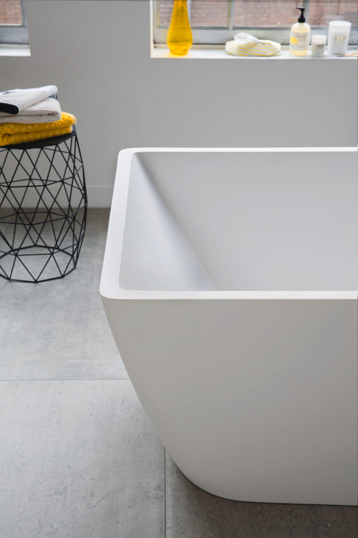 zentraler Ablauf, nahtlose Verkleidung, Material Mineralguss, Materialart DuraSolid A, Nutzinhalt 160/250 l, mit Fußgestell, Ab- und Überlaufgarnitur