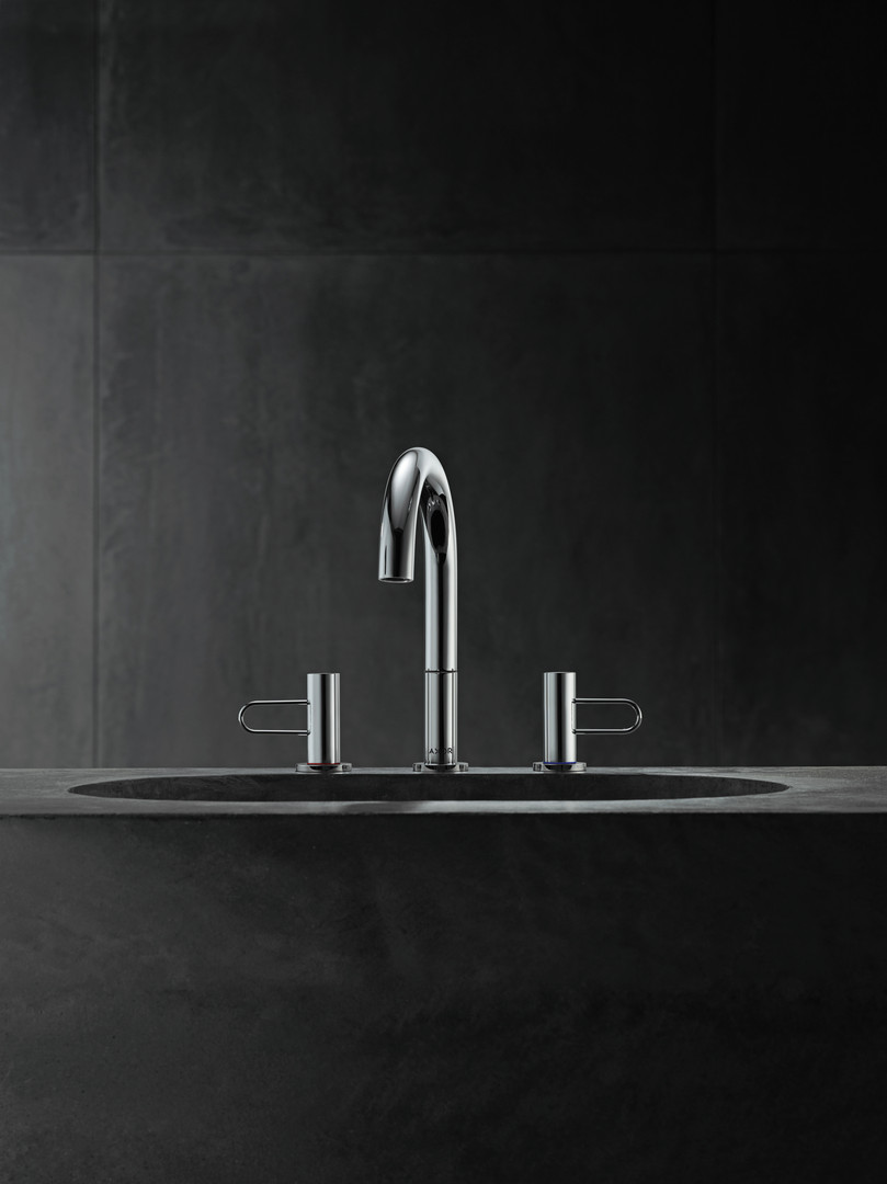 hansgrohe 3-Loch-Waschtischarmatur 200 Axor Uno Ausladung 183mm, mit Zerogriffen, Zugstangen-Ablaufgarnitur, chrom K20571284