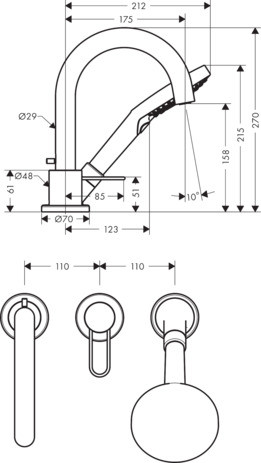 bestehend aus 3-Loch Einhebel-Wannenrandmischer, Handbrause, Brausehalter, 2 Verbraucher, Ausladung 175 mm, Anschlussart Grundkörper, Strahlart Armatur Normalstrahl, Strahlart Handbrause Rain, RainAir, WhirlAir, max. Durchflussmenge bei 3 bar 18 l/min, Durchflussmenge für Wanneneinlauf bei 3 bar 18 l/min, Durchflussmenge für Handbrause bei 3 bar 14 l/min, Mindestfließdruck 1 bar, Keramikmischsystem, Temperaturbegrenzung einstellbar, max. Ausziehlänge Handbrause 1100 mm, Betriebsdruck min. 1/max. 10 bar, Anschlussgröße DN 15, AirPower Technologie, Quick Clean Antikalksystem