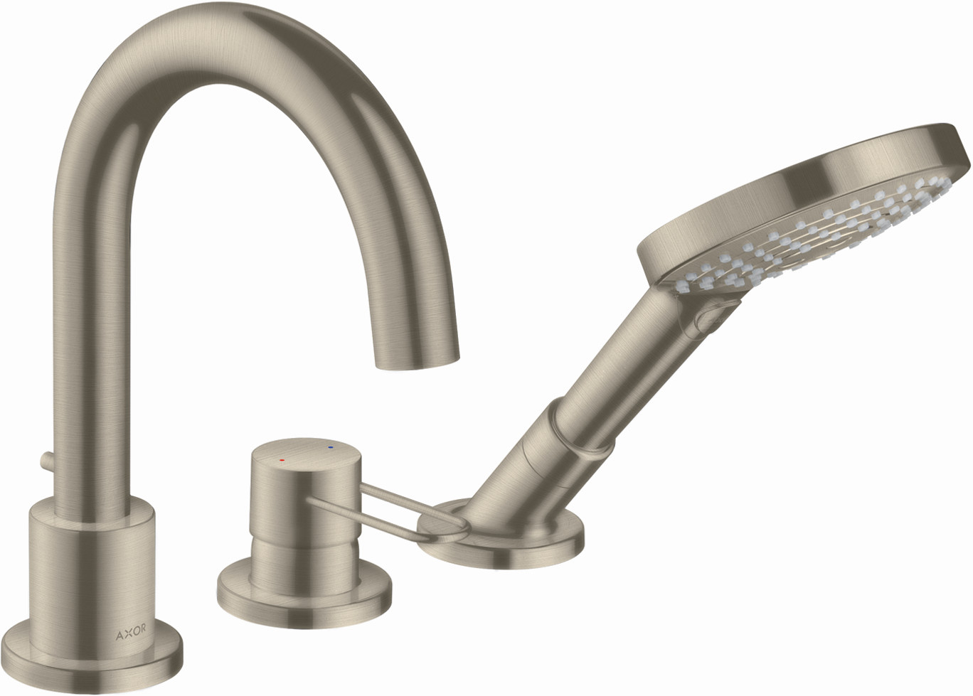 hansgrohe Fertigmontageset Axor Uno 3-Loch Wannenrand-Einhebelmischer, mit Bügelgriff, Brushed Nickel