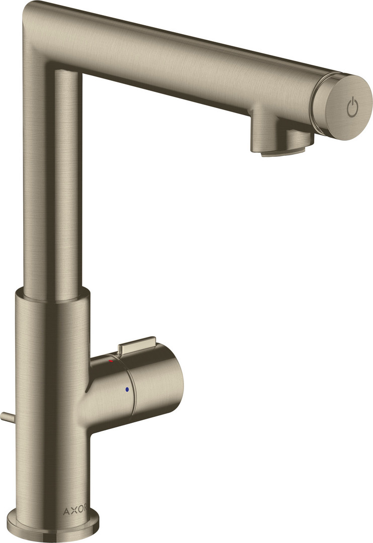 hansgrohe Waschtisch-Einhebelmischer 220 Axor Uno Select Ausladung 160mm, mit Zugstangen-Ablaufgarnitur, Brushed Nickel