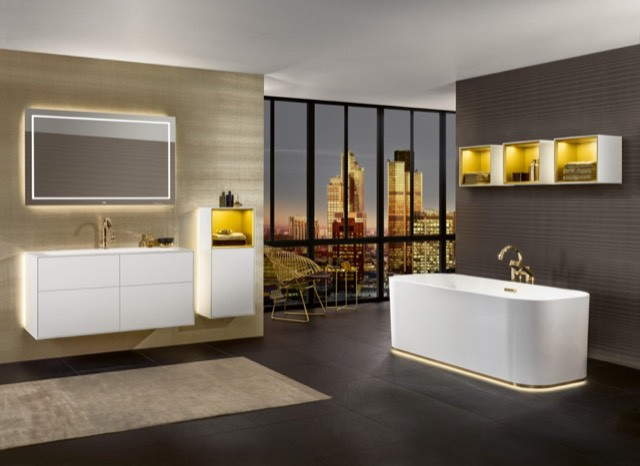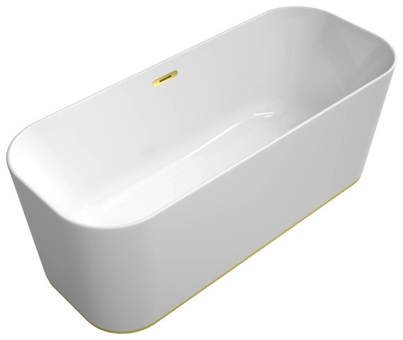 V&B Rechteck-Freistehwanne Finion Ausstattung Gold Quaryl, Push-to-Open-Ventil, Überlauf, Design-Ring, weiß K20738566