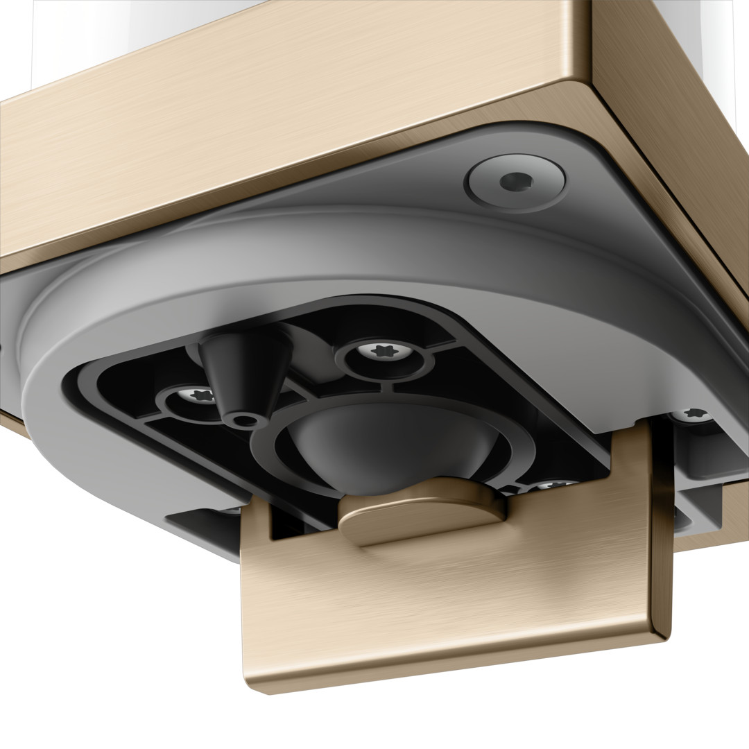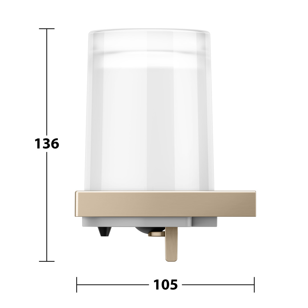 Füllmenge 180 ml, Dosiermenge 0,5 ml/Hub, Betätigung von unten, Befüllung von oben, Ecktkristall-Stülpglas mattiert, verdeckte Befestigung, zum Schrauben, mit Befestigungs-Set