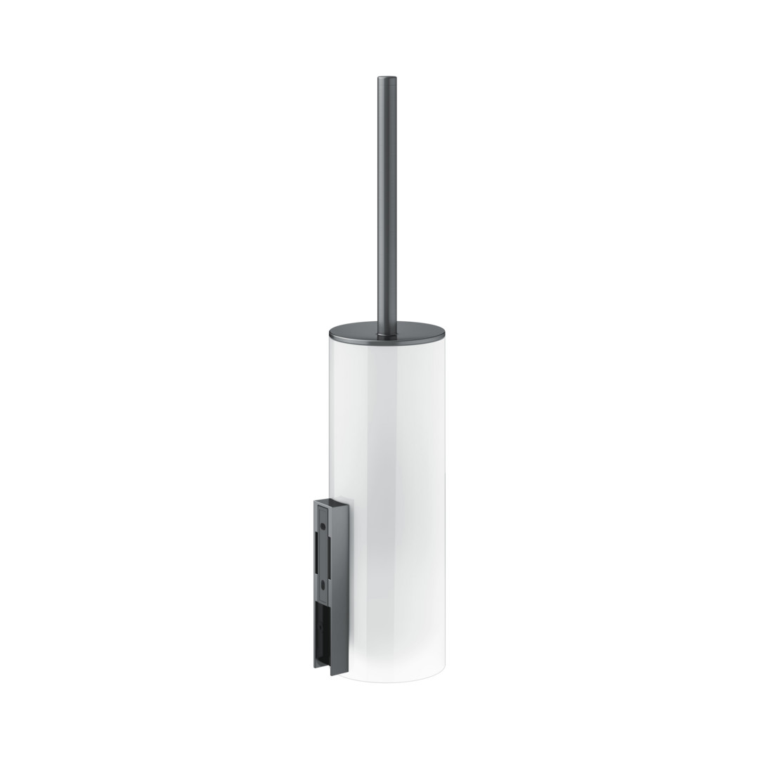 KEUCO Toilettenbürstengarnitur Edition 400 herausnehmbarer Kunststoff-Einsatz, mit Echtkristall-Glas mattiert, schwarzchrom gebürstet