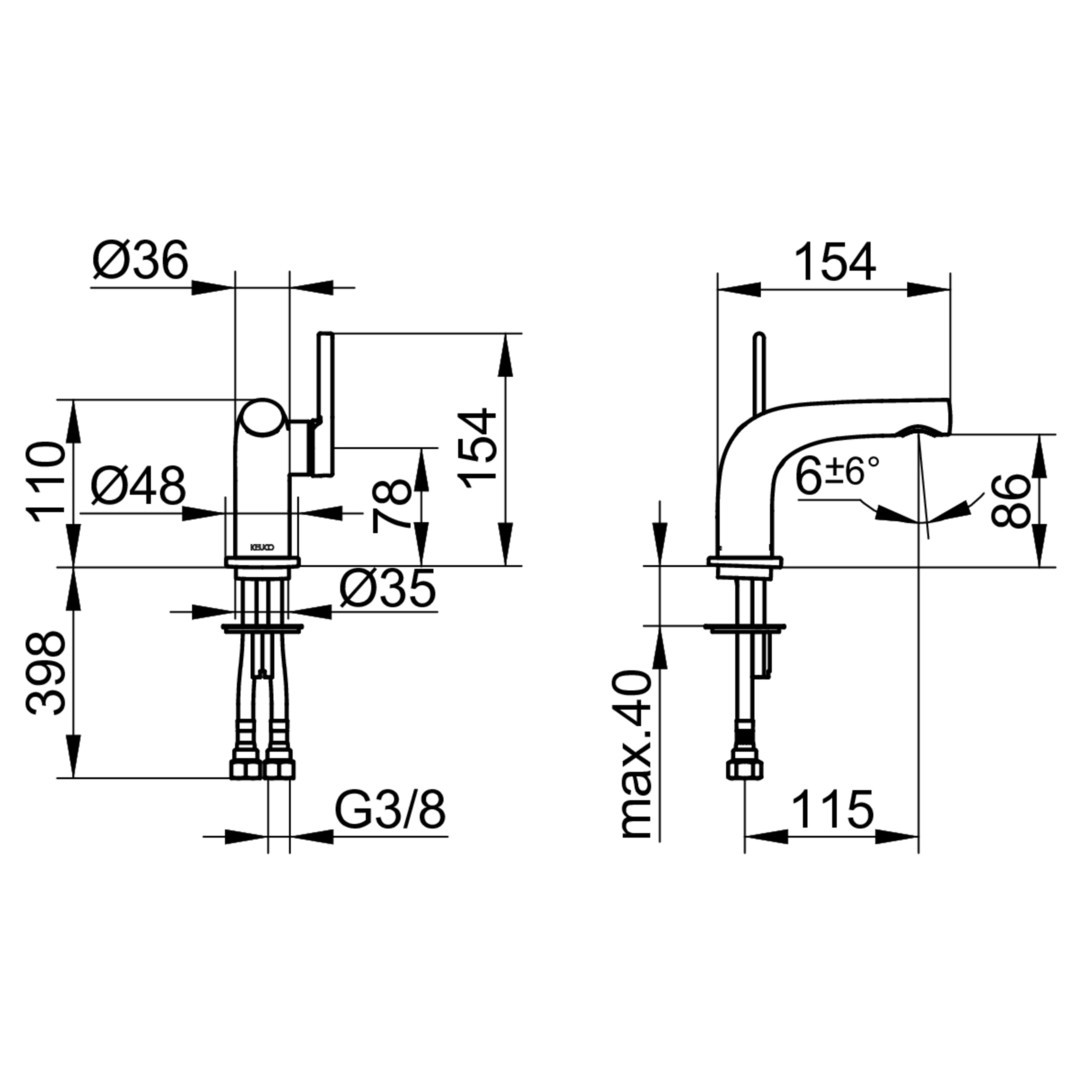 KEUCO Waschtisch-Einhebelmischer 80 Edition 400 Ausladung 115mm, ohne Ablaufgarnitur, verchromt K20578936