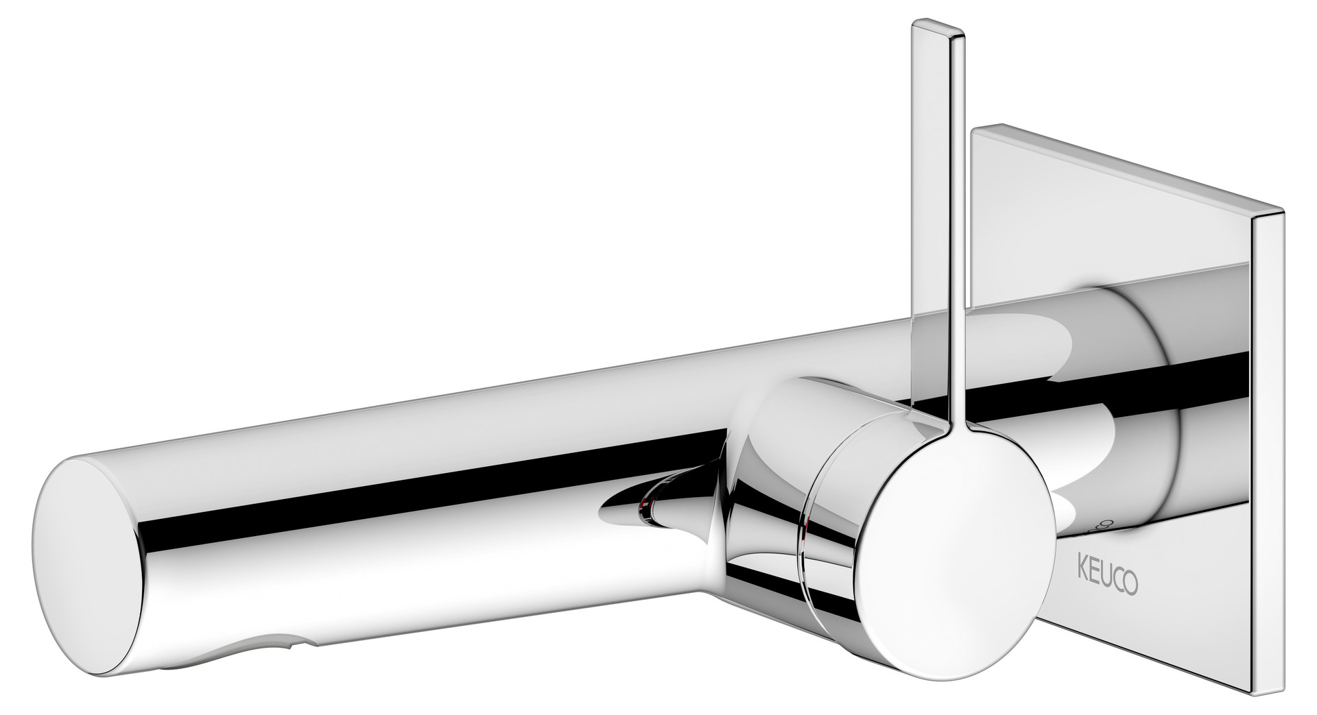 KEUCO Waschtisch-Einhebelmischer IXMO Pure Ausladung 243 mm, Aluminium-finish, Wandmontage, eckige Rosette