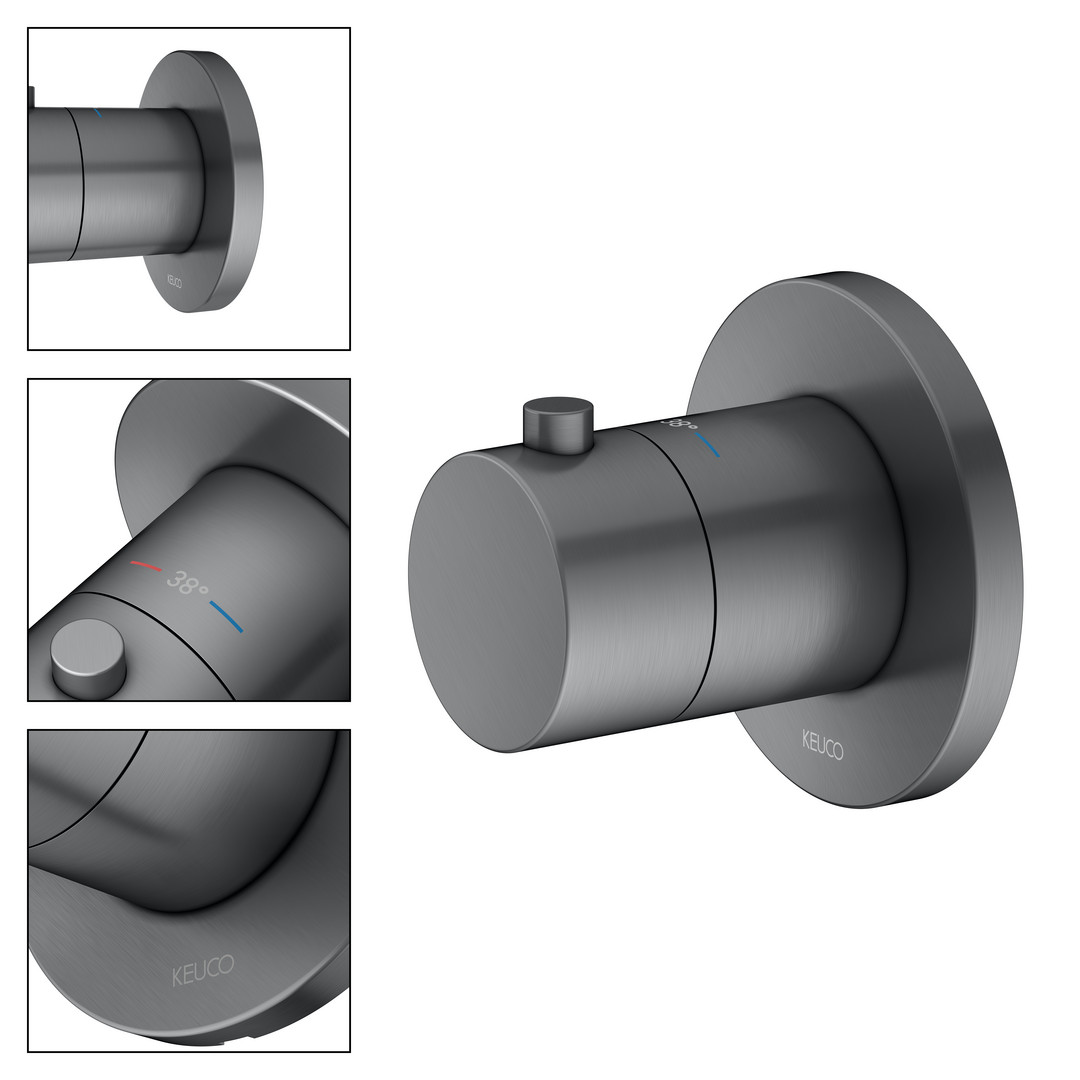 KEUCO Fertigmontageset IXMO UP-Thermostat, Rosette rund, schwarzchrom gebürstet K20579532