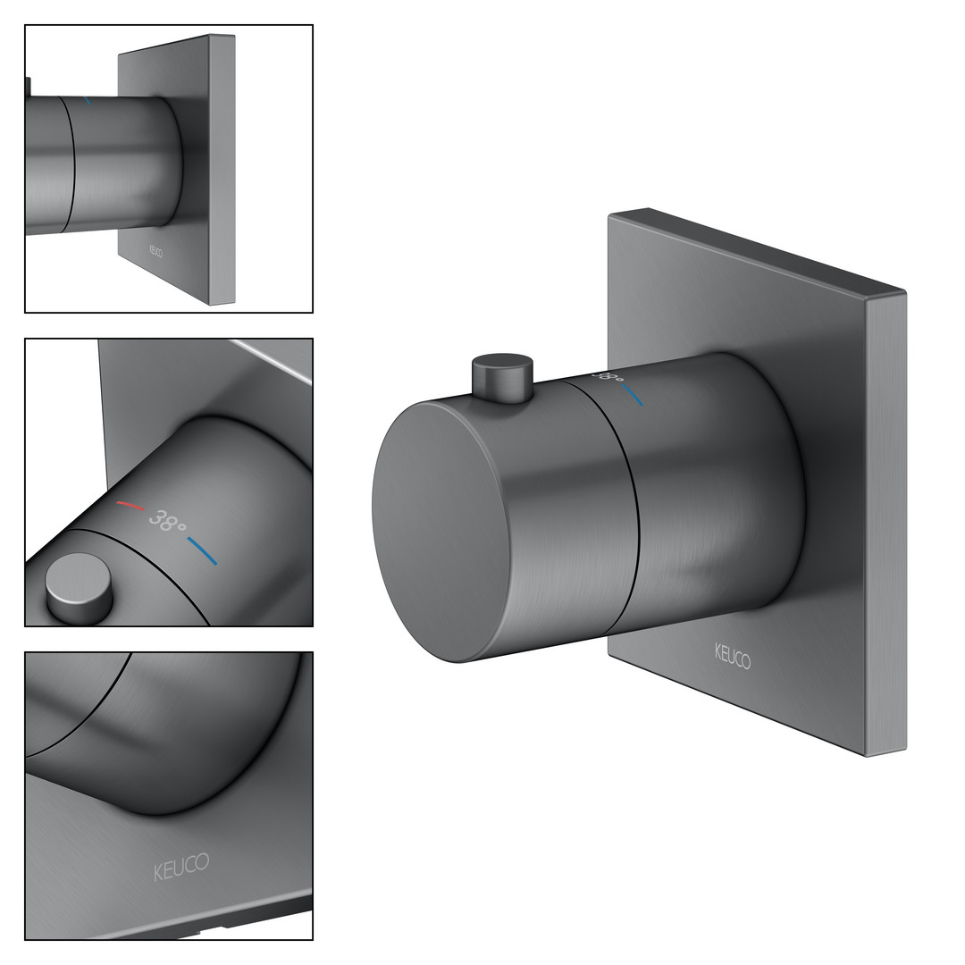 KEUCO Fertigmontageset IXMO UP-Thermostat, Rosette eckig, schwarzchrom gebürstet K20579533