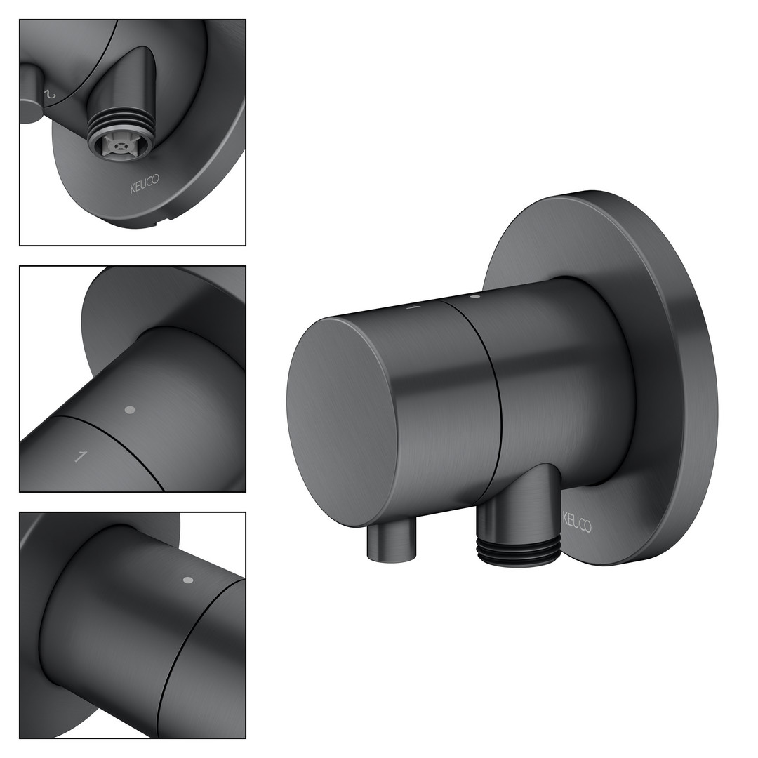 KEUCO Fertigmontageset IXMO UP-Umstellventil, Rosette rund, ohne Absperrung, schwarzchrom gebürstet