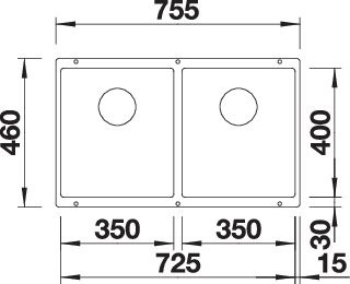 Blanco Becken SUBLINE 350/350-U SILGRANIT 75,5 x 46 cm, vulkangrau K20223744