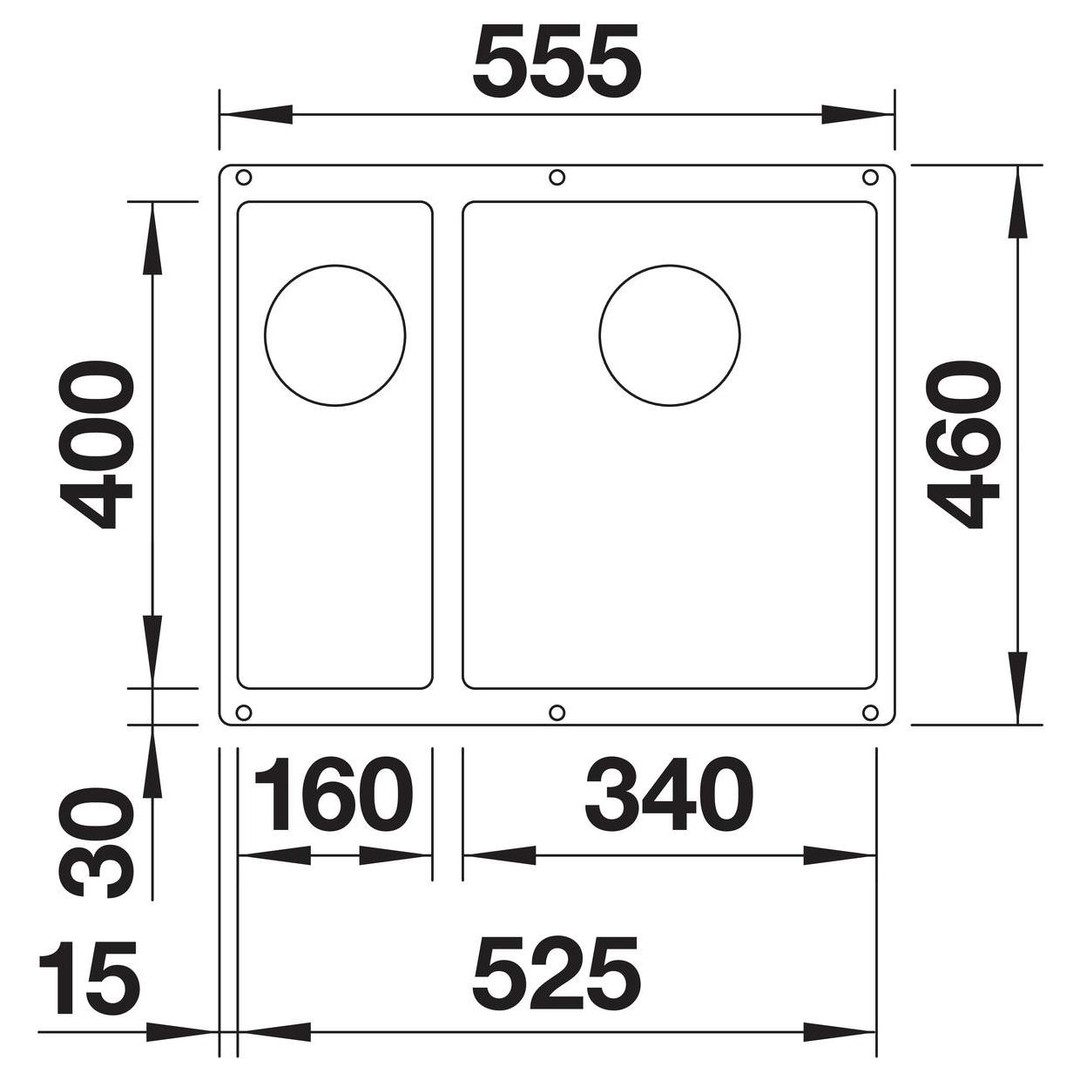 Blanco Becken SUBLINE 340/160-U SILGRANIT 55,5 x 46 cm, vulkangrau, Hauptbecken rechts K20223743