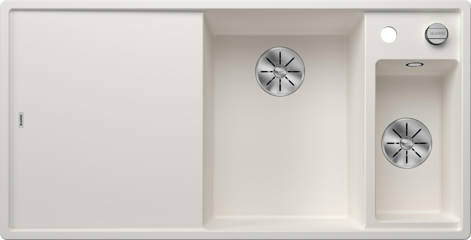 Blanco Spüle AXIA III 6 S SILGRANIT 100 x 51 cm, weiß, Hauptbecken rechts, mit Ablauffernbedienung Glasschneidbrett