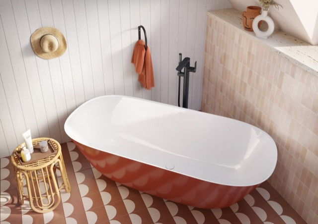 V&B Badewanne Theano 175x80cm, freistehend, Schürze Colour on Demand, Quaryl, weiß