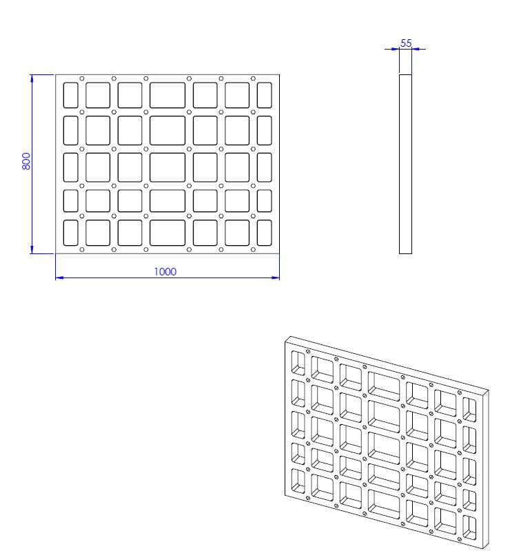 Schedel Unterbauelement quadroU Kessel 100 x 80 x 5,5 cm, rechteckig, 1 Montagekleber