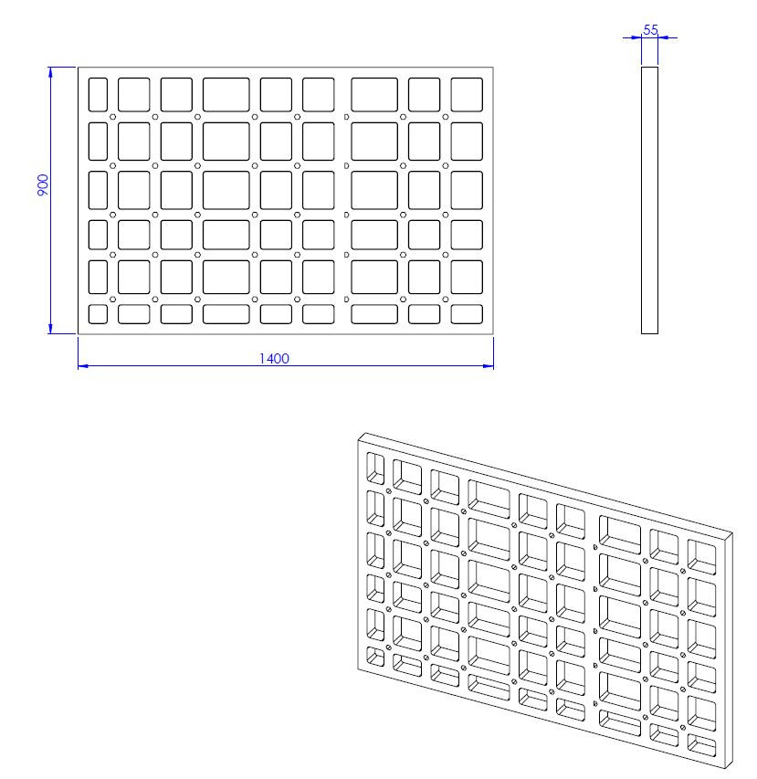 Schedel Unterbauelement quadroU Kessel 140 x 90 x 5,5 cm, rechteckig, 2 Montagekleber