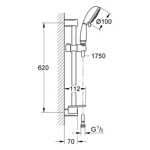 GROHE Brausegarnitur Tempesta Rustic 100 Brausestange 60cm, 4 Strahlarten, chrom K20548419