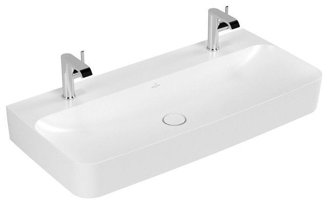 V&B Waschtisch Finion 100x47cm, 2 Hahnlöcher, ohne Überlauf, Unterseite geschliffen, weiß C+ K20562614