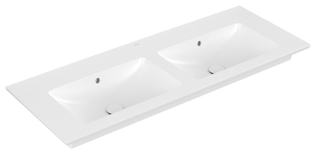 V&B Möbel-Doppelwaschtisch VENTICELLO 130 x 50 cm, ohne Hahnloch, mit Überlauf, weiß K20563894