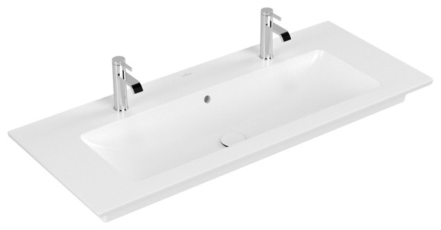 V&B Möbel-Waschtisch VENTICELLO 120 x 50 cm, 2 Hahnlöcher, mit Überlauf, weiß C-plus K20563890