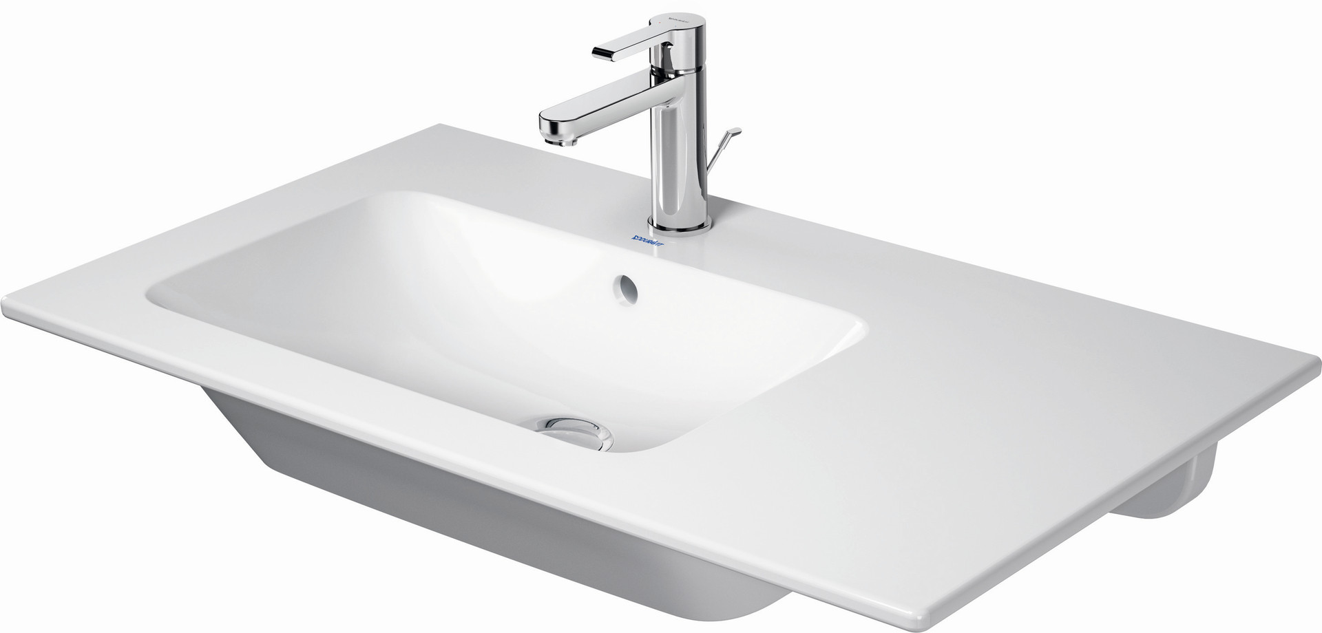 Duravit Möbel-Waschtisch Me by Starck 83x49cm, Becken links, Überlauf, Hahnlochbank, ohne Hahnloch, weiß seidenmatt K24588264