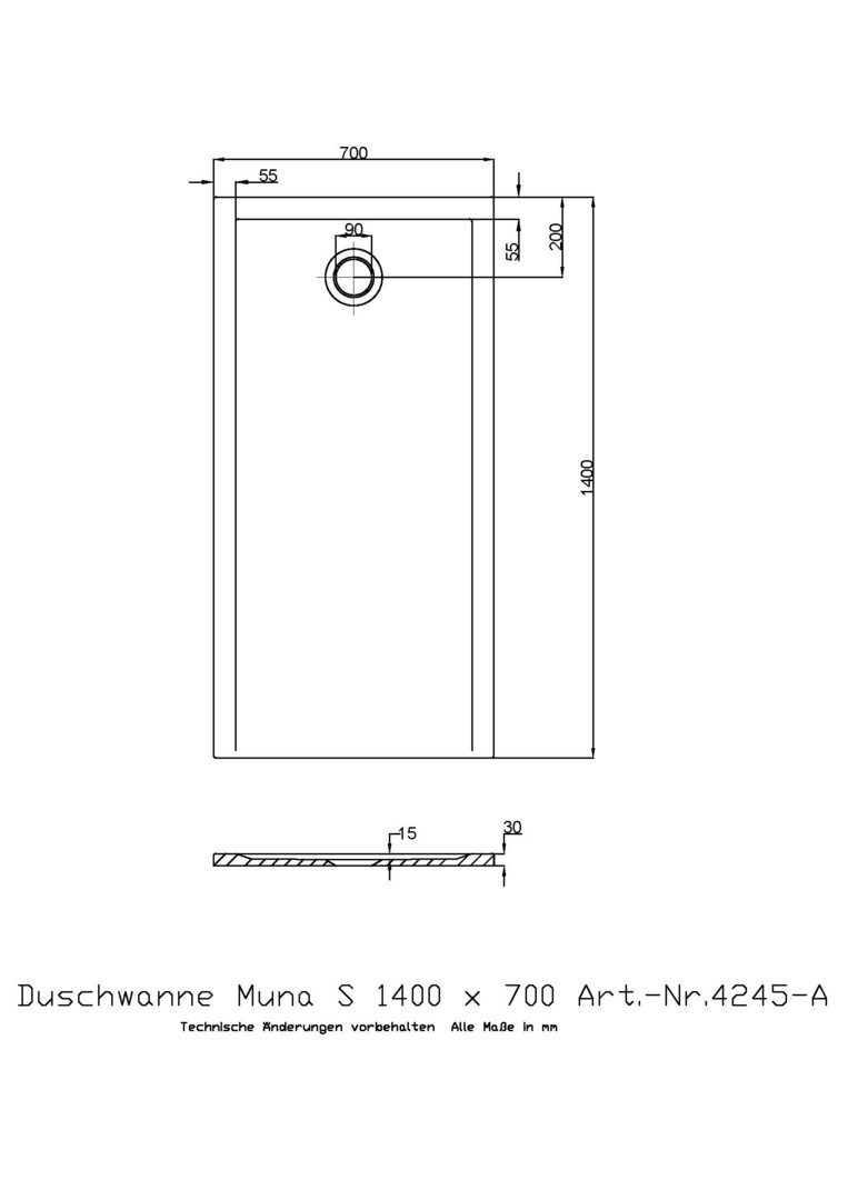 Ablauf Ø 90 mm, aus Mineralguss Solique