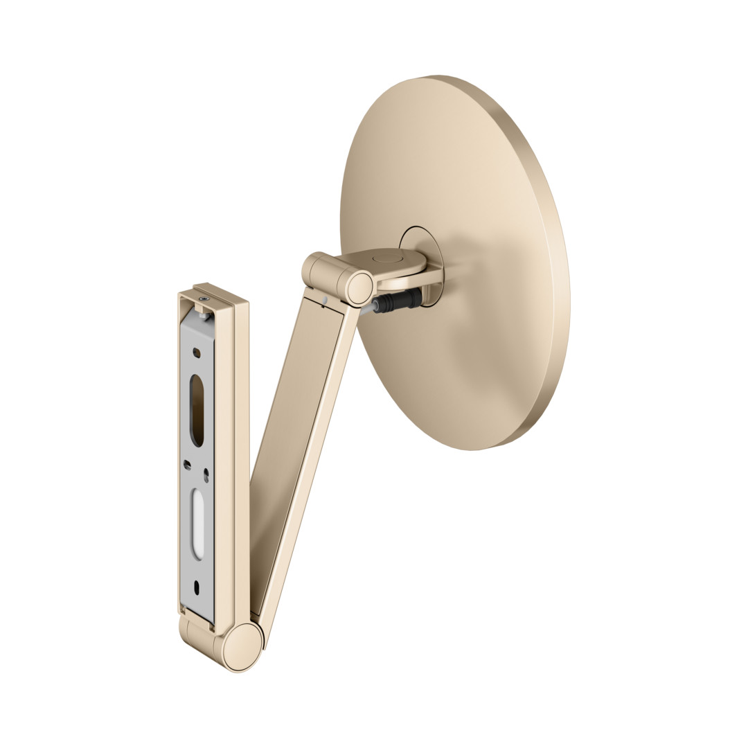 Wandmodell, eckig, IP24, stufenlos einstellbar von 2700 Kelvin (warmweiß) bis 6500 Kelvin (Tageslicht), mit UP-Kabelführung, an dreidimensional verstellbarem Schwenkarm, Spiegel einseitig, Vergrößerungsfaktor x 5, Bedienung über Glasbedienfeld mit kapazitiver Touch-Sensorik und LED-Anzeige, Stromversorgung: Netzanschluss über Wandanschlussdose, 12 V Unterputz-Netzteil, Eingangsbereich 220~240 V, Unterputz-Netzteil und Niedervolt-Verbindungskabel im Lieferumfang enthalten, Beleuchtung: LED 4,5 Watt