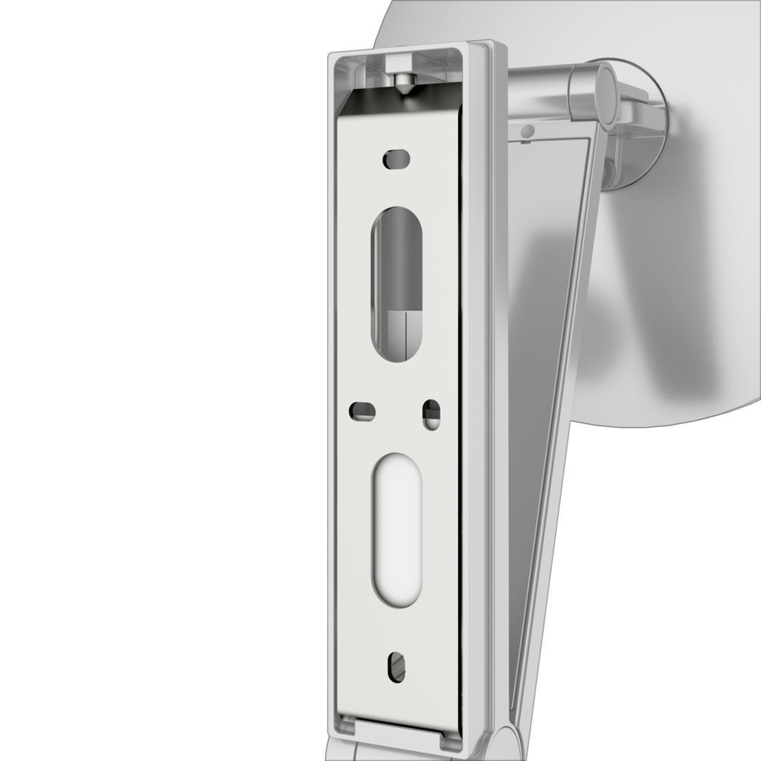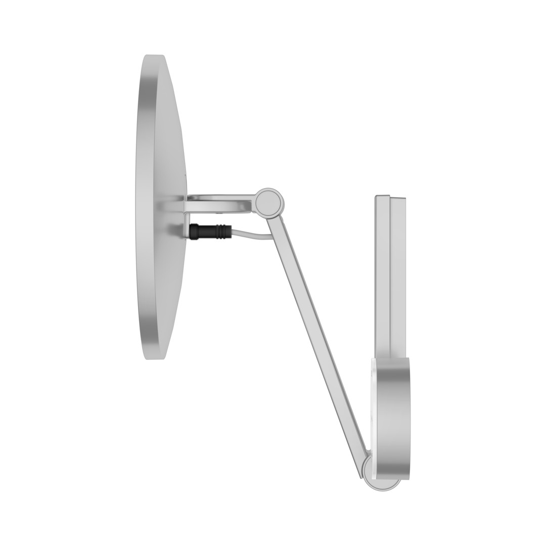 Wandmodell, eckig, IP24, stufenlos einstellbar von 2700 Kelvin (warmweiß) bis 6500 Kelvin (Tageslicht), mit UP-Kabelführung, an dreidimensional verstellbarem Schwenkarm, Spiegel einseitig, Vergrößerungsfaktor x 5, Bedienung über Glasbedienfeld mit kapazitiver Touch-Sensorik und LED-Anzeige, Stromversorgung: Netzanschluss über Wandanschlussdose, 12 V Unterputz-Netzteil, Eingangsbereich 220~240 V, Unterputz-Netzteil und Niedervolt-Verbindungskabel im Lieferumfang enthalten, Beleuchtung: LED 4,5 Watt