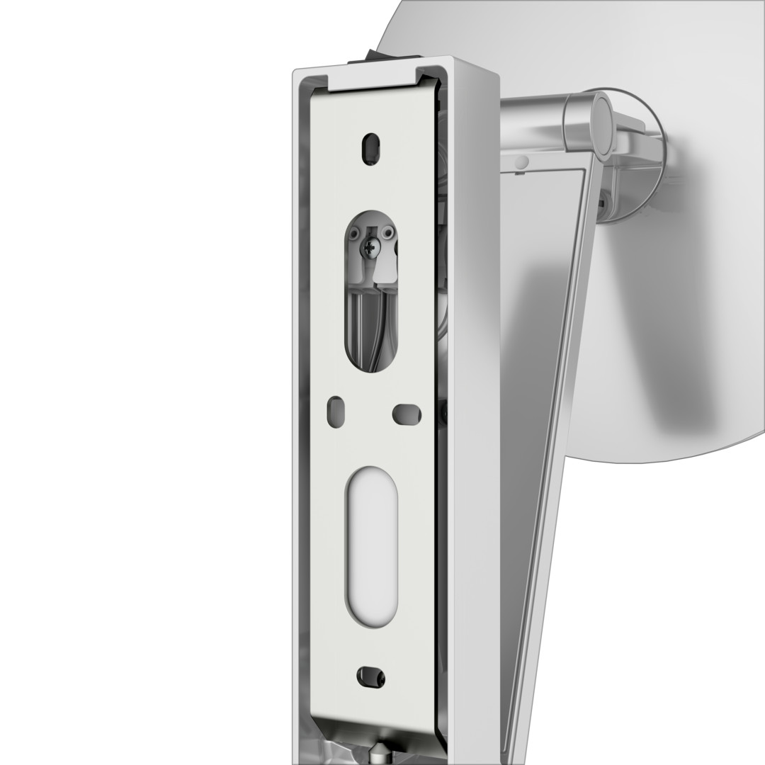 Schutzart IP 24, Wandmontage, rund, 3-dimensionaler Gelenkarm, Spiegel einseitig, konkav, Vergrößerungsfaktor x5, Bedienung Wippschalter, Beleuchtung 6500 Kelvin (tageslichtweiß), LED 4,5 Watt, Netzanschluss erforderlich