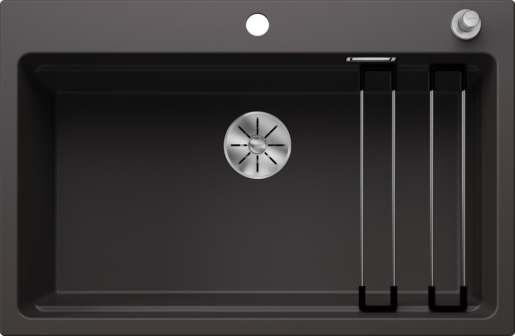 Blanco Becken ETAGON 8 SILGRANIT 78 x 51 cm, schwarz, Ablauffernbedienung mit Zugknopf, mit Zubehör K14845808