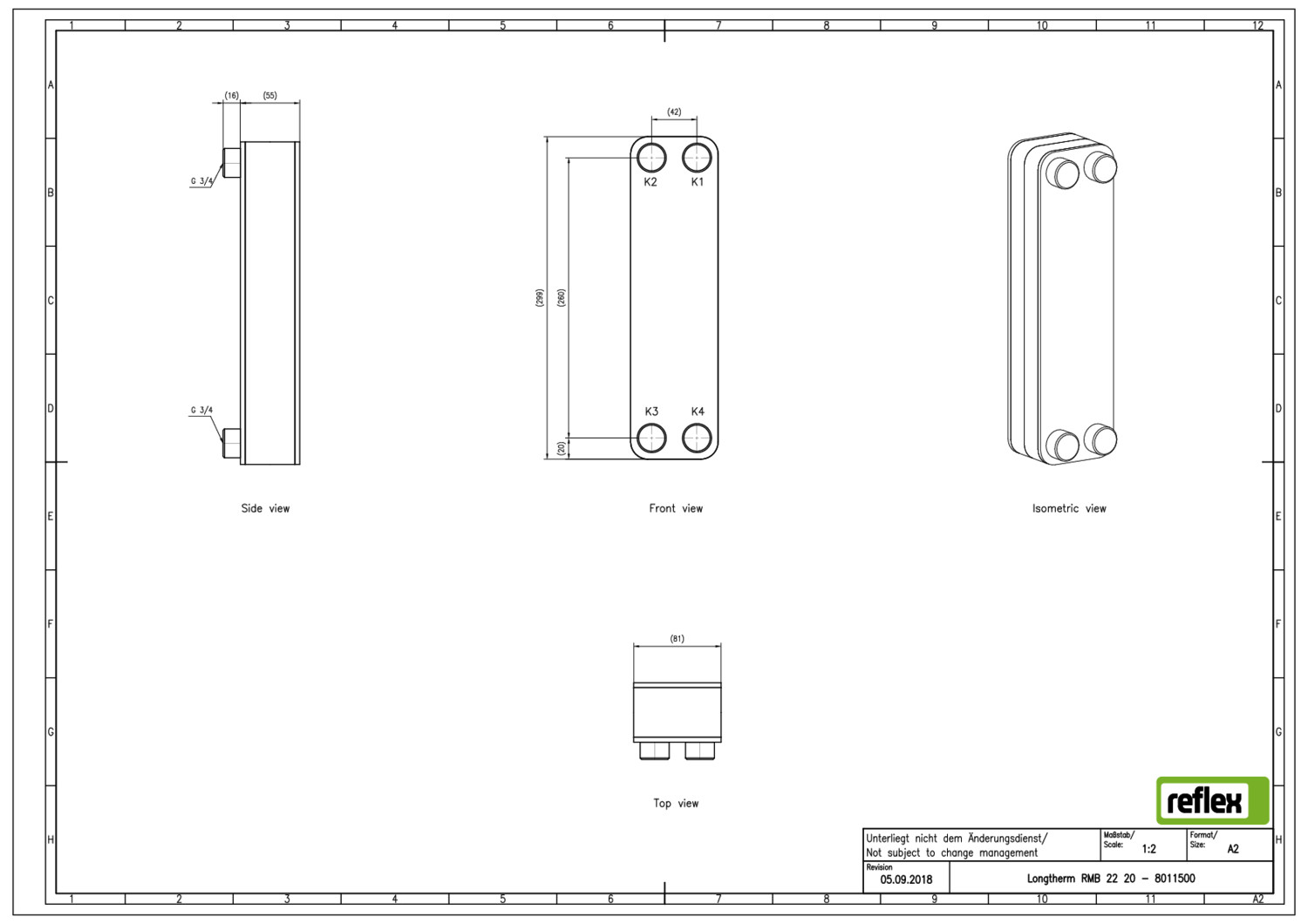 Reflex Wärmetauscher Longtherm RMB-14-20, Plattenzahl 20, gelötet, Edelstahl, eingängig K10576653