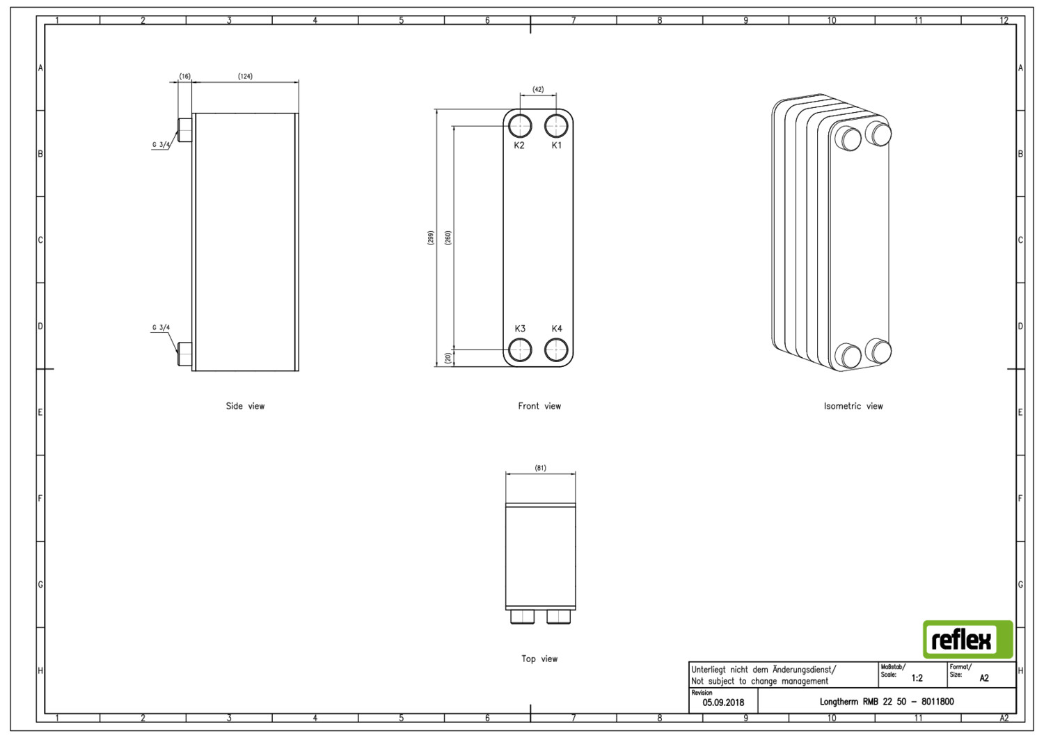 Reflex Wärmetauscher Longtherm RMB-14-20, Plattenzahl 20, gelötet, Edelstahl, eingängig K10576653