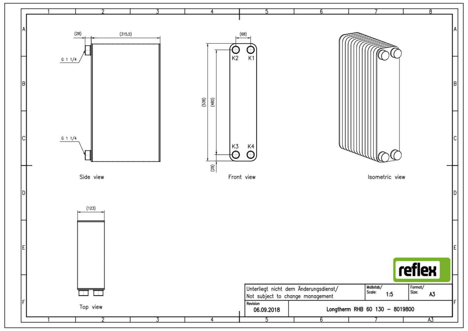 Reflex Wärmetauscher Longtherm RHB-60-130, Plattenzahl 130, gelötet, Edelstahl, eingängig