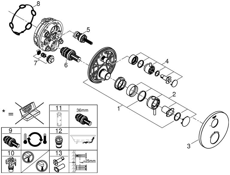 GROHE Fertigmontageset Atrio UP-Brause-Thermostat mit Absperrventil, chrom K20547261