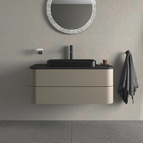 Duravit Aufsatz-Waschtisch Happy D.2 Plus 60 x 40 cm, geschliffen, ohne Hahnloch, Überlauf, Hahnlochbank, anthrazit matt WonderGliss