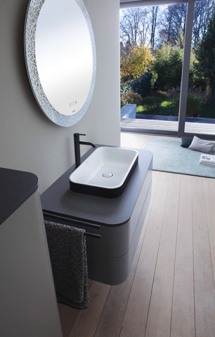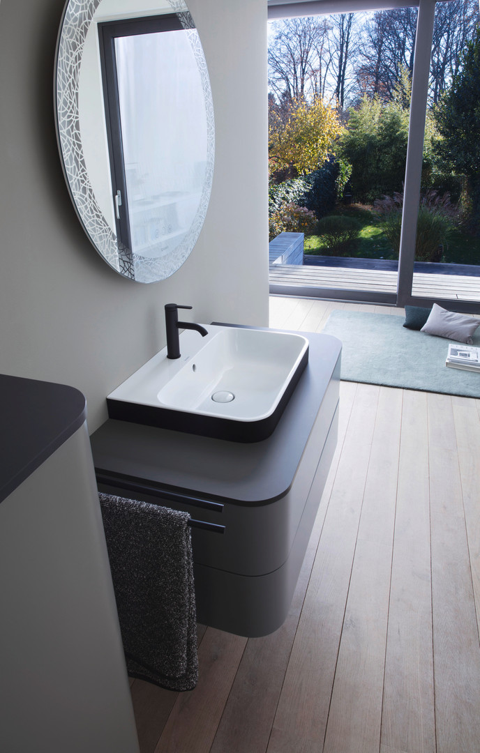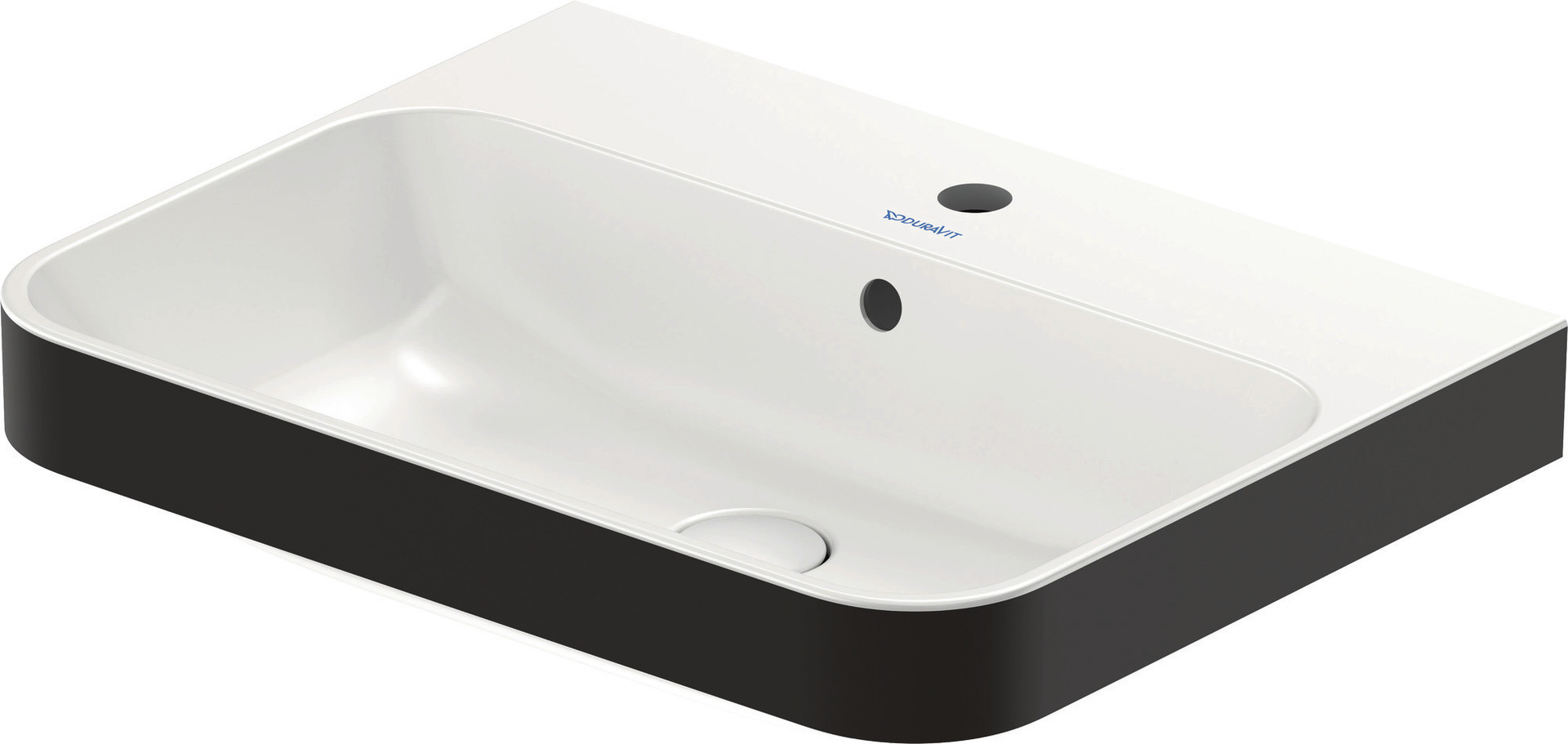 Duravit Aufsatz-Waschtisch Happy D.2 Plus 60x46cm, geschliffen, mit Hahnloch, Überlauf, Hahnlochbank, weiß/anthrazit matt WonderGliss
