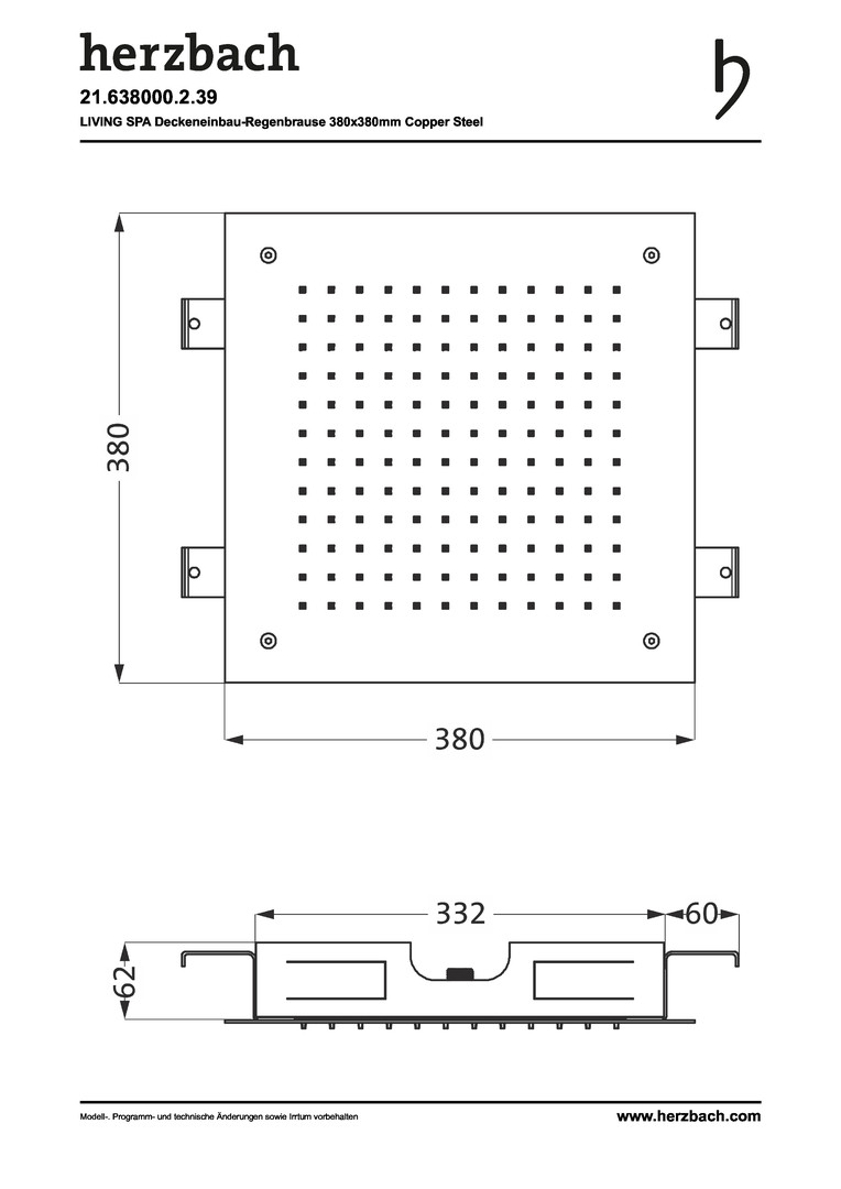 Herzbach Regenbrause Living Spa 380x380mm, Deckeneinbau, 1-strahlig, copper steel K10747492
