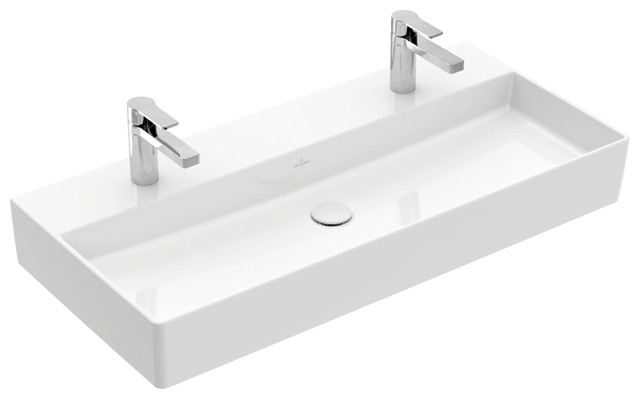 V&B Waschtisch Memento 2.0 100x47cm, 2xHahnloch, ohne Überlauf, weiß alpin C-plus