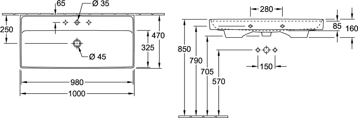 V&B Schrankwaschtisch Collaro 100 x 47 cm, mit Überlauf, weiß K20562500