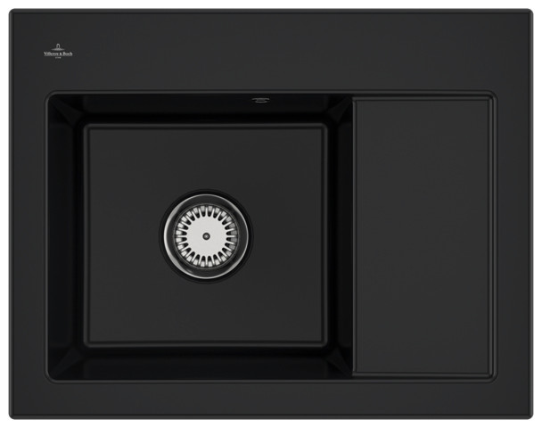 V&B Spüle Subway 45 Compact links, mit Ablaufgarnitur, Handbetätigung, ebony CeramicPlus