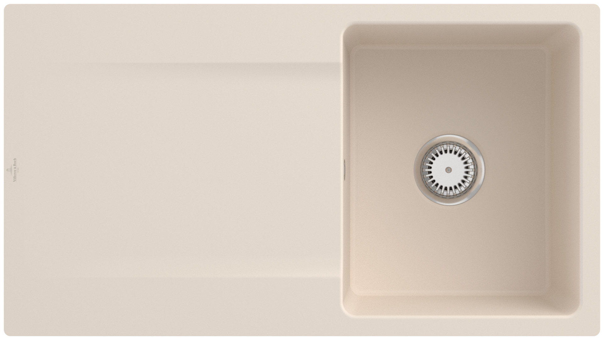 V&B Flächenbündige Spüle Siluet 50 Flat mit Ablaufgarnitur, Handbetätigung, ivory