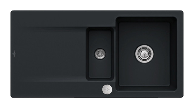 V&B Flächenbündige Spüle Siluet 60 R Flat mit Ablaufgarnitur, Excenterbetätigung, ebony