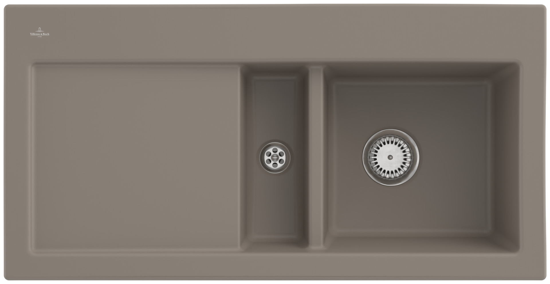 V&B Spüle Subway 60 rechts, mit Ablaufgarnitur, Handbetätigung, timber CeramicPlus