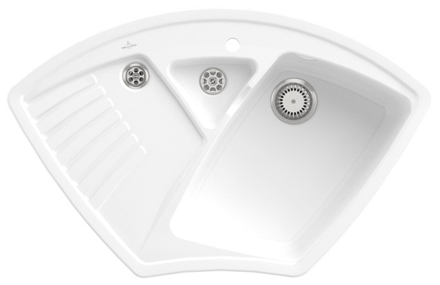V&B Eckspüle Arena Eck mit Ablaufgarnitur, Handbetätigung, snow white CeramicPlus