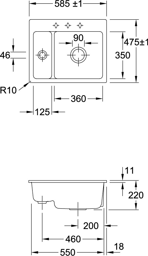 für den flächenbündigen Einbau in Natur-/Keramik-/Glas- und Quarzsteinarbeitsplatten, minimale Unterschrankbreite 60 cm