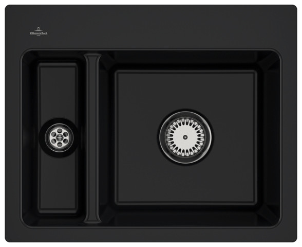 V&B Flächenbündige Spüle Subway 60 XM Flat mit Ablaufgarnitur, Handbetätigung, ebony