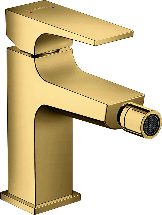 hansgrohe Bidet-Einhebelmischer Metropol mit Hebelgriff, Push-Open-Ablaufgarnitur, Ausladung 129mm, polished gold optic