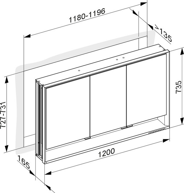 KEUCO Spiegelschrank kurze Türen Royal Lumos 120 x 73,5 x 13 cm, mit Ablagefach, Wandeinbau, 3-türig, silber-eloxiert K22757392